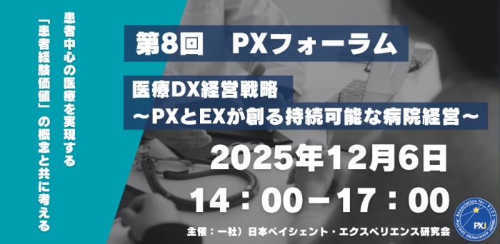 第8回となる今回は、医療DX経営戦略 ~PXとEXが創る持続可能な病院経営~をテーマとして12月6日に「第8回PXフォーラム」を開催します。